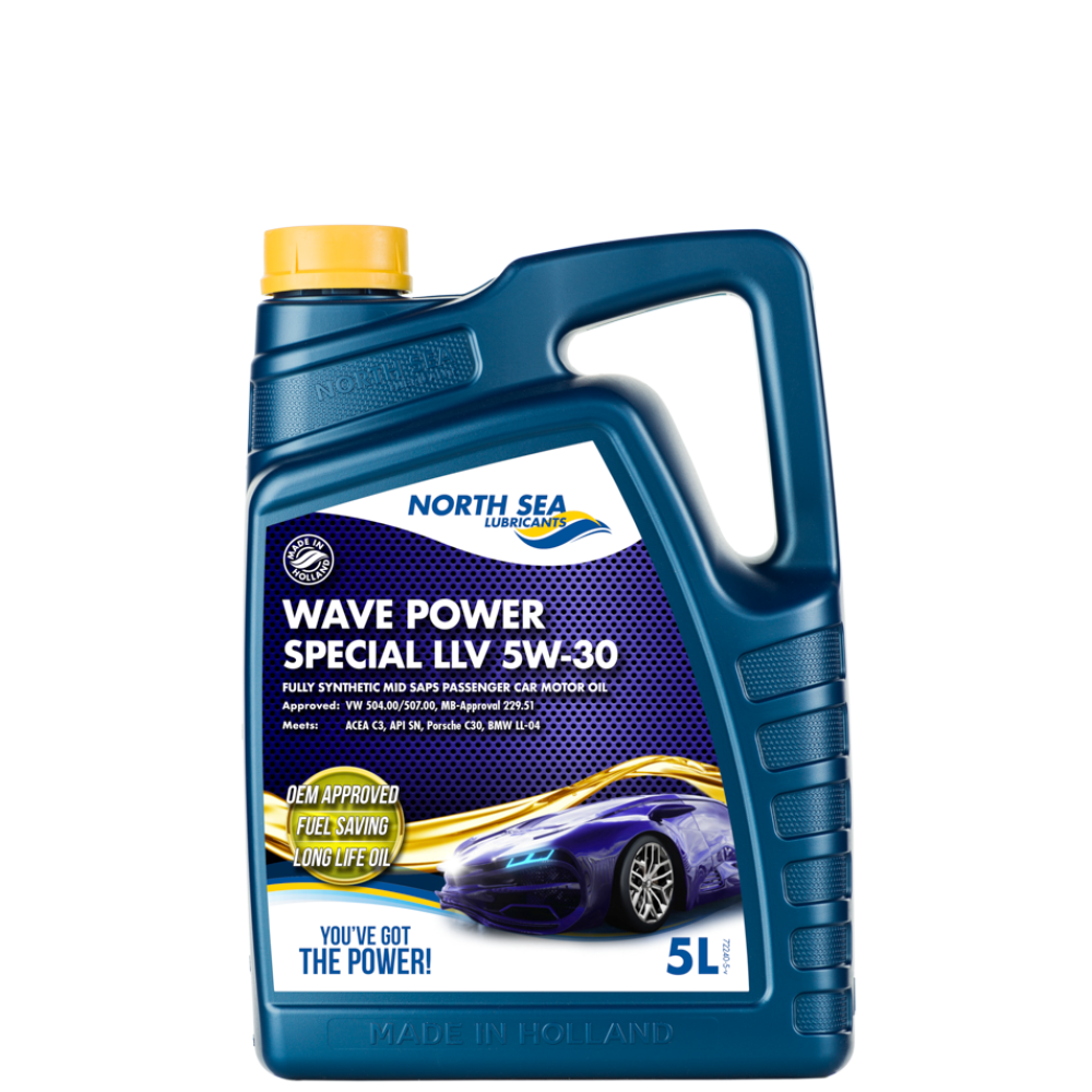 NORTH SEA WAVE POWER SPECIAL LLV 5W-30 is een high-performance brandstofbesparende MID SAPS long life olie op basis van 100% synthetische technologie voor gebruik in benzine- en dieselmotoren van personenauto's en lichte bestelwagens waar een VAG-norm 504.00/507.00 is voorgeschreven en ook geschikt voor voertuigen waar MB 229.51 en BMW LL-04 vereist zijn. Ook geschikt voor gebruik voor voertuigen waar oorspronkelijk VW 506.01 vereist is.